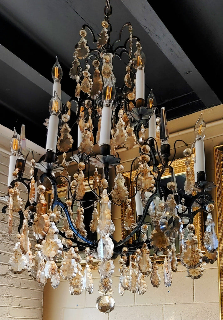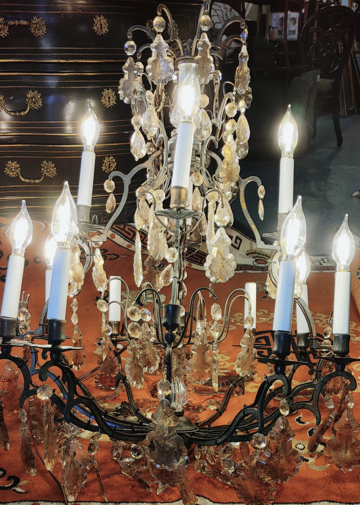 Vintage French Style Bronze and Crystal 12 Light Chandelier