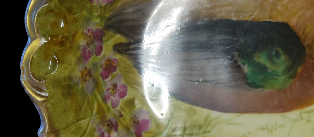 Late 19th century porcelain plate set by B&H Limoge France depict various game birds on scalloped plates with gold encrusted rims against a subtle yellow field. Each plate is hand-painted and signed by the artist. Create an unforgettable holiday tablescape or gorgeous gallery wall with these antique pieces! Good antique condition with small chips and paint loss to the platter and a small chip on the small duck plate. See photos for more details. Circa 1890-1910.