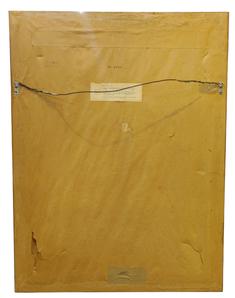 Beautiful Japanese print depicting the flight of cranes descending from a high place towards a green space of mountains and trees. This composition evokes a sense of tranquility and peace you'll appreciate. Beautifully famed in a heavy wood frame, this piece is in good preowned condition with minor wear consistent with age and use.