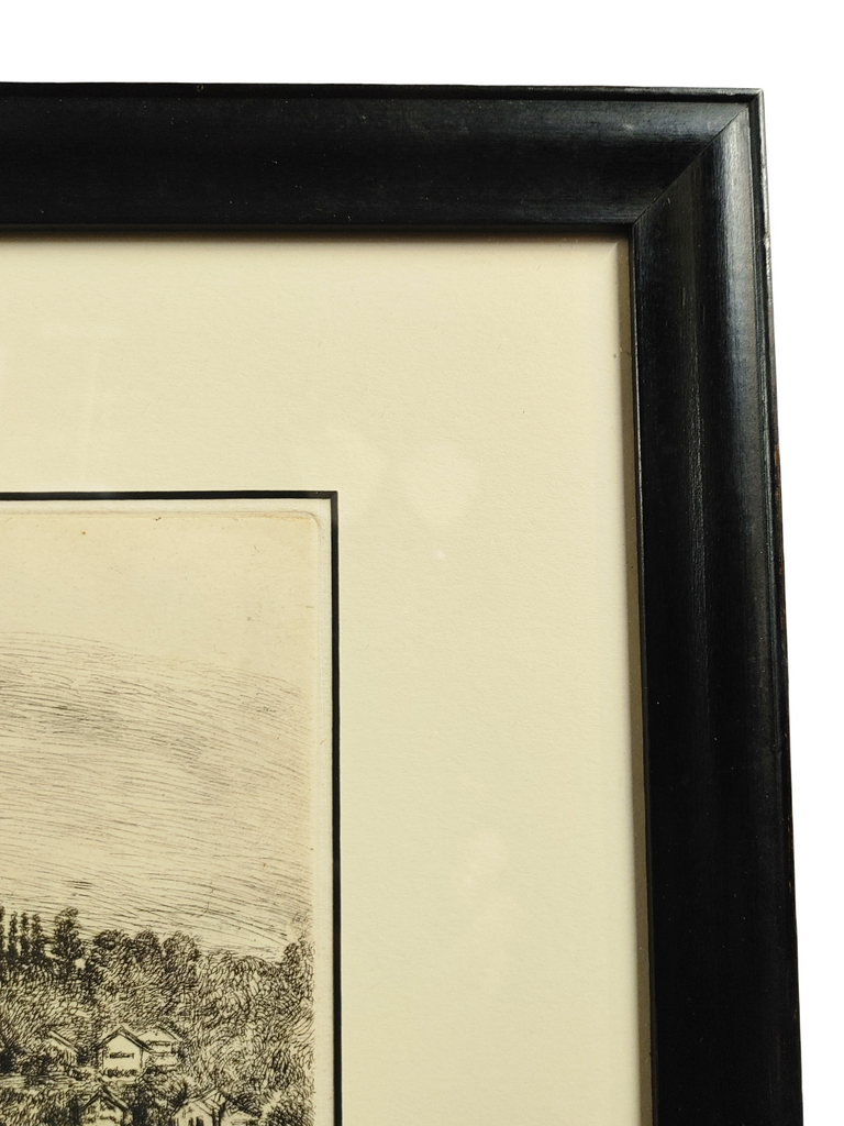 Signed original lithograph depicting what appears to be a large public gathering at a local fair. Hand-signed in pencil on the bottom left "Original Radierung" (German, original etching). Also Pencil-signed by the artist on the right corner. Matted and framed in a simple black wooden frame. Excellent preowned condition.